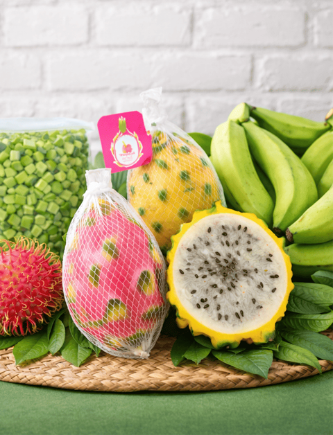 Hass Avocados, Mangos (Tommy, Kent, Ataulfo), Bananas, and Dragon Fruit.